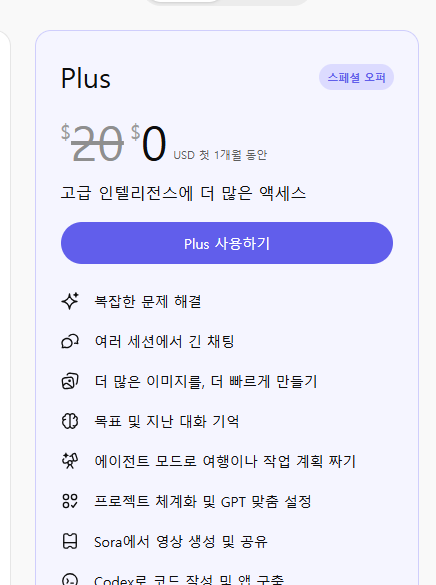 | 월 요금 | $20 | 29,000 원 |
