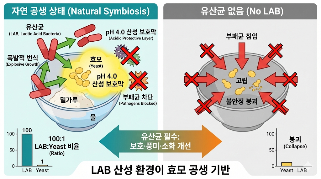 📌 야생 효모 + 유산균의 공생 관계