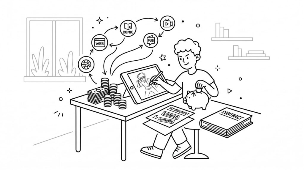 💡 Kateko 꿀팁: “계약서에 ‘MG 정산 방식’이 명시되어 있지 않으면 반드시 확인을 요청하세요. ‘선차감’과 ‘후차감’의 차이는 작가의 몇 달치 생활비를 좌우할 수 있어요. 계약서를 혼자 검토하기 어렵다면 웹툰작가협회나 법률구조공단의 무료 상담을 활용하는 것을 추천합니다!”